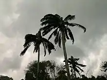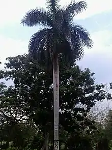 Two Roystonea regia specimens. The characteristic crownshaft and apex shoot, or 'spear', are visible.