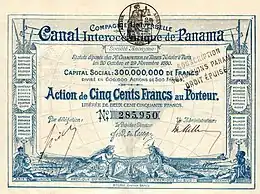 Share of the Compagnie Universelle du Canal Interocéanique de Panama, issued 29. November 1880 – signed by Ferdinand de Lesseps