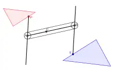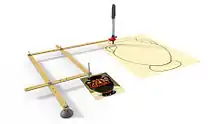 Sculptors use a three-dimensional version of the pantograph,[4] usually a large boom connected to a fixed point at one end, bearing two rotating pointing needles at arbitrary points along this boom. By adjusting the needles different enlargement or reduction ratios can be achieved. This device, now largely overtaken by computer guided router systems that scan a model and can produce it in a variety of materials and in any desired size,[5] was invented by inventor and steam pioneer James Watt and perfected by Benjamin Cheverton in 1836. Cheverton's machine was fitted with a rotating cutting bit to carve reduced versions of well-known sculptures.[6] A three-dimensional pantograph can also be used to enlarge sculpture by interchanging the position of the model and the copy.[7][8]
