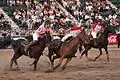 During the tug itself, or cinchada, both players must stand on the stirrups and avoid sitting on the saddle, while the hand not involved in the tugging must hold the reins. The tug is usually the most exciting part of the game.