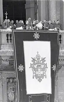 Although some cardinals seem to have viewed him as papabile, a likely candidate to become pope, and although he may consequently have received some votes in the 1958 conclave,[57] Montini was not yet a cardinal, which made him an unlikely choice.[lower-alpha 1] Angelo Roncalli was elected pope on 28 October 1958 and took the name John XXIII. On 17 November 1958, L'Osservatore Romano announced a consistory for the creation of new cardinals. Montini's name led the list.[58] When the Pope raised Montini to the cardinalate on 15 December 1958, he became Cardinal-Priest of Ss. Silvestro e Martino ai Monti. The Pope appointed him simultaneously to several Vatican congregations which resulted in many visits by Montini to Rome in the coming years.[59]