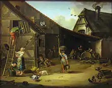 In most of Germany, farming was handled by tenant farmers who paid rents and obligatory services to the landlord—typically a nobleman.[19] Peasant leaders supervised the fields and ditches and grazing rights, maintained public order and morals, and supported a village court which handled minor offenses. Inside the family the patriarch made all the decisions, and tried to arrange advantageous marriages for his children. Much of the villages' communal life centered on church services and holy days. In Prussia, the peasants drew lots to choose conscripts required by the army. The noblemen handled external relationships and politics for the villages under their control, and were not typically involved in daily activities or decisions.[20]