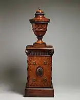 A pedestal (from French piédestal, Italian piedistallo 'foot of a stall') or plinth is a support at the bottom of a statue, vase, column, or certain altars. Smaller pedestals, especially if round in shape, may be called socles. In civil engineering, it is also called basement. The minimum height of the plinth is usually kept as 45 cm (for buildings). It transmits loads from superstructure to the substructure and acts as the retaining wall for the filling inside the plinth or raised floor.