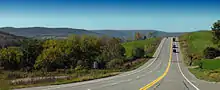 PA 87 begins at an interchange with I-180/US 220 in the borough of Montoursville in Lycoming County, heading north on Loyalsock Avenue, a two-lane divided highway. The route immediately crosses into Fairfield Township and becomes an undivided, unnamed road, running between farmland to the west and woodland with homes to the east. The road continues into Upper Fairfield Township and heads through more agricultural areas with some residences, intersecting the western terminus of PA 864 in Farragut. PA 87 heads through more farmland and woodland with some homes to the east of the Loyalsock Creek, passing through Loyalsockville and coming to an intersection with the eastern terminus of PA 973. The road passes through more farm fields with some woods and residences in a narrow valley, crossing into Plunketts Creek Township as it heads north-northwest. The route curves to the north and the northeast before heading east into dense forests alongside the creek, heading to the northeast and continuing through scattered tracts of the Loyalsock State Forest. PA 87 heads north through more forests with a few homes, turning northeast before heading southeast. The road runs northeast through woods with a few fields and residences, curving east before turning north into more dense forests.[2][3]