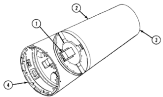 4. Rocket motor assembly: Filament-wound cylindrical assembly that contains forward lift points, solid propellant, and first stage ignition system: Rocket motor assembly also serves as the outer surface of the forward section of the first stage.