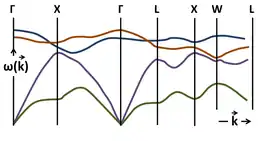 - 1 2 Yu, Peter Y.; Cardona, Manuel (2010). "Fig. 3.2: Phonon dispersion curves in GaAs along high-symmetry axes". Fundamentals of Semiconductors. Physics and Materials Properties (4th ed.). Springer. p. 111. ISBN 978-3-642-00709-5.