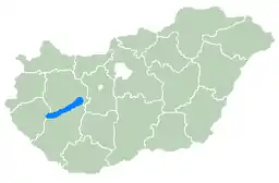 Location of Lake Balaton within Hungary