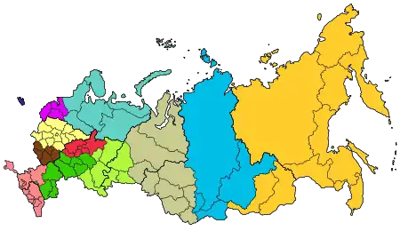 For economic and statistical purposes the federal subjects are grouped into twelve economic regions.[13] Economic regions and their parts sharing common economic trends are in turn grouped into economic zones and macrozones.