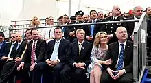 Cruz believes that "engaging in homosexual conduct is a choice."[79] He thinks that marriage should be legally defined as only "between one man and one woman,"[80] but believes that the legality of same-sex marriage should be left to each state to decide.[81] On February 10, 2015, Cruz re-introduced the State Marriage Defense Act.[82] Cruz opposes participation in gay pride marches, criticizing Dallas' Republican mayor Tom Leppert, stating "When a mayor of a city chooses twice to march in a parade celebrating gay pride that's a statement and it's not a statement I agree with."[83] He voted against reauthorizing the Violence Against Women Act, which included provisions to extend protection to lesbians and gays.[83] In a speech in April 2015 in Waukee, Iowa, Cruz said that "[t]here is a liberal fascism that is dedicated to going after believing Christians who follow the biblical teaching on marriage."[84]