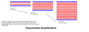• Exponential amplification: At every cycle, the amount of product is doubled (assuming 100% reaction efficiency). After 30 cycles, a single copy of DNA can be increased up to 1,000,000,000 (one billion) copies. In a sense, then, the replication of a discrete strand of DNA is being manipulated in a tube under controlled conditions.[16] The reaction is very sensitive: only minute quantities of DNA must be present.