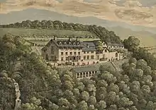 The area was once part of the Hafod Estate, owned by Thomas Johnes who built a small hunting lodge on the estate which was eventually expanded into an inn. The building burned down and was rebuilt.[13] Significant renovations were completed in 1837–1839 and in the 1860s. After several expansions and upgrades, it has been operated as the Hafod Hotel, using this name since the 1860s. In 2017, new owners had arranged for a survey in preparation for a major renovation; they intended to maintain much of the historical character of the building.[14][15] Some interior renovation work had been completed by September 2017.[16]