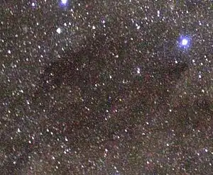 The Coalsack Nebula is a dark nebula in the constellation of Crux Australis. Dark nebulae consist of cold dense clouds of gas and dust, which are only seen because they obscure visible light from more distant objects. Dark nebulae are often the location of star formation, which can be revealed within them by observations at infrared and radio wavelengths, which are much less affected by absorption and scattering by interstellar material
