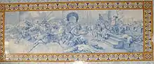 ![]() Panel of azulejos by Jorge Colaço (1864–1942) at the São Bento railway station, depicting Prince Henry the Navigator during the conquest of Ceuta | |||||||