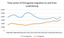 Time series of migrations involving Portuguese citizens in Luxembourg (2006–2021)