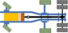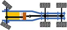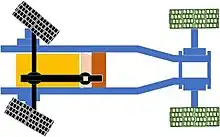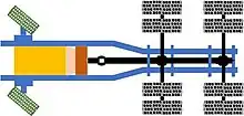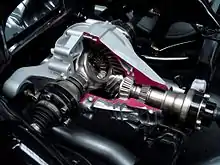 The final drive is the last in the set of components which delivers torque to the drive wheels. In a road vehicle, it incorporates the differential. In a railway vehicle, it sometimes incorporates the reversing gear. Examples include the Self-Changing Gears RF 28 (used in many first-generation diesel multiple units of British Railways)[3] and RF 11 used in the British Rail Class 03 and British Rail Class 04 diesel shunting locomotives.