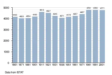 - ↑ "Popolazione Residente al 1° Gennaio 2018". Italian National Institute of Statistics. Retrieved 16 March 2019.