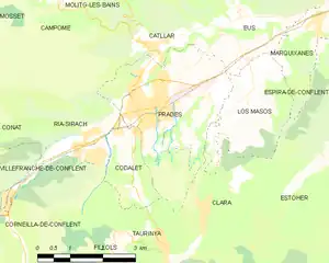 Prades (French pronunciation: [pʁad]; Catalan: Prada de Conflent [ˈpɾaðə ðə kumˈflen]) is a subprefecture of the Pyrénées-Orientales department in the Occitanie region of Southern France.[3] In 2018, the commune had a population of 6,063. Prades is the capital of the historical Conflent comarca. Its inhabitants are called Pradéens and Pradéennes in French and Pradencs and Pradenques in Catalan. It is also the hometown of Jean Castex, who served as Prime Minister of France from 2020 to 2022.