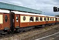For Sale by tender, January 2017. Built with wooden frames and bogies, which would preclude running above 25 mph[18][19] Intended to become a restaurant at the former Folkestone Harbour railway station.[20]