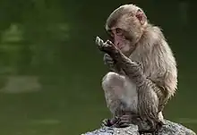Although there are prior examples of studies looking into non-human primates across Western countries,[28] the modern study of primate behavior originated in Japan.[29] The first international journal in primatology, Primates, was created in Japan in 1957.[30] Japanese primatology was established through the observation of free-ranging Japanese macaques (Macaca fuscata) by Jun'ichiro Itani, Kinji Imanishi and Shunzo Kawamura.[31] The main aim of these first primatologists was to understand the social structure of the macaques groups they were observing.[30] Following their prior expertise in the individual identification of wild horses, they began to give nicknames to each monkey.[32] Furthermore, to habituate the monkeys to their presence, they began to give them food while they established a long-term observation method.[32] A few years later, in one of the Japanese macaque sites, a young female, later nicknamed "Imo", was observed washing a sweet potato in a small stream.[32] After this instance, Kawamura began more systematic observations of this behavior discovering the propagation of sweet-potato washing among other members of the group.[32] As a result of the sweet-potato washing phenomenon, Japanese primatologists started to draw the first direct associations of the terms culture and subculture in association with non-human animals.[33] Another major contribution of Japanese primatology took place with the foundation in 1978 of the ape-language project (later named Ai project) at the Primate Research Institute of Kyoto University with the collaboration of Kiyoko Murofushi, Toshio Asano and Tetsuro Matsuzawa.[31] Although the Ai project had a focus on language acquisition their methods emphasized the cognitive capabilities more than the communicative skills of the monkeys. Through projects of this kind, Japanese primatology highlighted the importance of merging both field and experimental settings for the study of primate behavior and cognition.[31]
