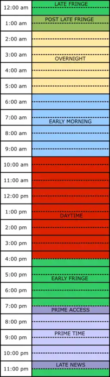 Until the Federal Communications Commission (FCC) regulated time slots prior to prime time with the now-defunct Prime Time Access Rule in the 1971–1972 season, networks began programming at 7:30 p.m. Eastern and Pacific/6:30 p.m. Central and Mountain on weeknights. The change helped instigate what is colloquially known as the "rural purge"—a long-term trend away from programs appealing to older and rural audiences in favor of programs catering towards younger, "urban" viewers. As a result, the prime access hour became a lucrative timeslot for syndicated programming in the years that followed, with game show and variety show, as well as other syndicated reruns, becoming popular.[8][9][10]