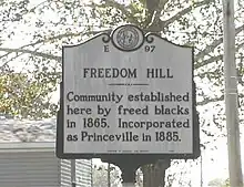- 1 2 "Marker: Historic Princeville: From slavery to Freedom Hill". digital.ncdcr.gov. Retrieved October 22, 2022.