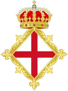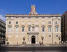 - Diputació del General or Generalitat de Catalunya (Deputation of the General or Generalitat of Catalonia): permanent council of deputies, established in 1359 by the Courts in order to collect the "taxes of the General",[73] and later gained political power and tasks of prosecutor, becoming the most relevant Catalan institution during the early modern age. It consisted of three deputies and three oïdors (auditors of accounts), there was one deputy and one oïdor by estate.[74]