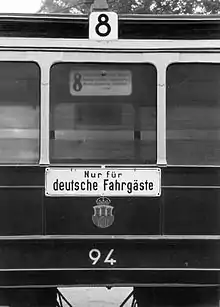 Nur für deutsche Fahrgäste ("Only for German Passengers"), a Nazi slogan used in occupied territories, mainly posted at entrances to parks, cafes, cinemas, theatres, and other facilities