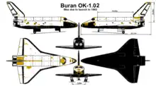 2K (GRAU index serial number 11F35 2K, NPO Molniya airframe number 1.02), often erroneously referred to as Ptichka (Russian: Птичка, "little bird", a nickname for all orbiters in the programme[2]), is the second Buran-class orbiter, produced as part of the Soviet/Russian Buran programme. Although 2K was the closest to being completed of any of the Buran-class orbiters (after the orbiter Buran), it was never finished. The program was officially cancelled in 1993, at which point the shuttle was 95-97% complete. The proposed official name for 2K was Burya (Russian: Буря, "storm" or "tempest").[1][3]