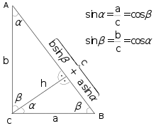 Both the proof using similar triangles and Einstein's proof rely on constructing the height to the hypotenuse of the right triangle . The same construction provides a trigonometric proof of the Pythagorean theorem using the definition of the sine as a ratio inside a right triangle: