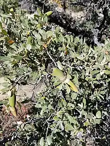 Quercus cornelius-mulleri is a North American species of oak known by the common name Muller oak, or Muller's oak. It was described to science in 1981 when it was segregated from the Quercus dumosa complex and found to warrant species status of its own.[3][4][5] It was named after ecologist Cornelius Herman Muller. It is native to southern California and Baja California, where it grows in chaparral, oak woodlands, and other habitat in foothills and mountains. It can most easily be observed in Joshua Tree National Park and in the woodlands along the western margins of the Colorado Desert in San Diego County, California.[6][7][8]