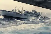 RFA Reliant (A84) was an air stores support ship of the Royal Fleet Auxiliary. She was formerly the commercial general cargo vessel Somersby which was purchased in 1956 and renamed on completion of her conversion in 1958. She was fitted for replenishing aircraft carriers at sea with a wide range of air, naval and victualling stores.[1] As refitted she had a helicopter landing pad built over the poop deckhouse.[2]