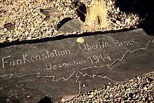 Memorial stone created by lieutenant Brock to remember the "Funkenstation" (radio station) on Farm Aar near Aus