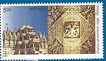 Chaturmukha temple is a 15th-century temple dedicated to Adinatha[18] built using white marble in the midst of a forest. The temple name is credited to its design of chaumukha— with four faces.[19][20] The construction of the temple and quadrupled image symbolise the Tirthankara's conquest of the four cardinal directions and hence the cosmos.[21][22] The temple is one of the largest Jain temples[3] and considered one of the five holiest Jain shrines in India and part of Gorwad Panch Tirth.[6][23] The architecture and stone carvings of the temple are based on the Ancient Mirpur Jain Temple at Mirpur in Rajasthan.[24]