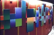 Using acrylic paint and wood—and sometimes Plexiglas and UV light—Burggraf frequently calls his paintings "color constructions",[4][5] and they have been exhibited in the United States, Sweden, and Korea.[6][7][8][9]
