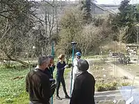 Real-time kinematic positioning (RTK) is the application of surveying to correct for common errors in current satellite navigation (GNSS) systems. It uses measurements of the phase of the signal's carrier wave in addition to the information content of the signal and relies on a single reference station or interpolated virtual station to provide real-time corrections, providing up to centimetre-level accuracy (see DGPS).[1] With reference to GPS in particular, the system is commonly referred to as carrier-phase enhancement, or CPGPS.[2] It has applications in land surveying, hydrographic surveying, and in unmanned aerial vehicle navigation.