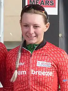 Rebecca Raybould (born 14 April 1998) is a British former road and track cyclist.[2] As part of Team Breeze, Raybould won the British National Team Pursuit Championships at the 2018 British National Track Championships and the 2019 British National Track Championships.[3] She also represented England at the 2018 Commonwealth Games in the time trial and pursuit events and was World Junior champion in the scratch race in 2016.[1]