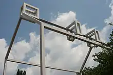 Robert Venturi's "ghost structure" reconstruction at Franklin Court of Benjamin Franklin's house, as part of Independence National Historical Park, in Philadelphia, Pennsylvania. The design concept, since used at other sites, resulted from insufficient information to accurately reconstruct the house, and it was instead decided merely suggested it.[3]