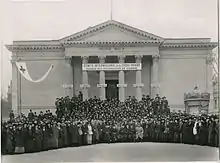 Group picture of the volunteers – mostly women – in front of the Musée Rath in 1914