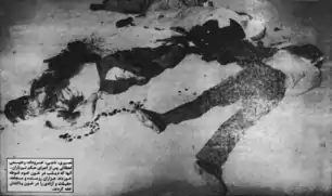 The aftermath of the execution by firing squad photographed and published to Kayhan (the execution of Rahimi, Naji, Nassiri and Khosrodad – 15 February 1979)