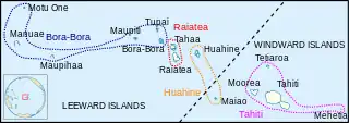 - the Society Islands archipelago, comprising the Windward Islands and the Leeward Islands