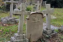 He is buried at St Mary Magdalen, Mortlake, together with his wife, Winefride de l’Hôpital, eldest daughter of the architect J F Bentley and author of Westminster Cathedral and Its Architect (1919).[2]