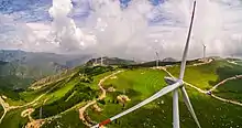 China is the world's leader in electricity production from renewable energy sources, with over triple the generation of the second-ranking country, the United States. China's renewable energy sector is growing faster than its fossil fuels and nuclear power capacity, and is expected to contribute 43 per cent of global renewable capacity growth.[1] China's total renewable energy capacity exceeded 1,000 GW in 2021, accounting for 43.5 per cent of the country's total power generation capacity, 10.2 percentage points higher than in 2015. The country aims to have 80 per cent of its total energy mix come from non-fossil fuel sources by 2060, and achieve a combined 1,200 GW of solar and wind capacity by 2030.[1] In 2023, it was reported that China was on track to reach 1,371 gigawatts of wind and solar by 2025, five years ahead of target due to new renewables installations breaking records.[2]