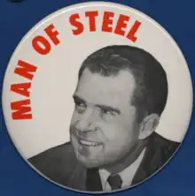 Nixon attended East Whittier Elementary School, where he was president of his eighth-grade class.[13] His older brother Harold had attended Whittier High School, which his parents thought resulted in Harold's dissolute lifestyle, before he contracted tuberculosis (that killed him in 1933). They decided to send Nixon to the larger Fullerton Union High School.[14][15] Though he had to ride a school bus an hour each way during his freshman year, he received excellent grades. Later, he lived with an aunt in Fullerton during the week.[16] He played junior varsity football, and seldom missed a practice, though he rarely was used in games.[17] He had greater success as a debater, winning a number of championships and taking his only formal tutelage in public speaking from Fullerton's Head of English, H. Lynn Sheller. Nixon later mused on Sheller's words, "Remember, speaking is conversation...don't shout at people. Talk to them. Converse with them."[18] Nixon said he tried to use a conversational tone as much as possible.[18]