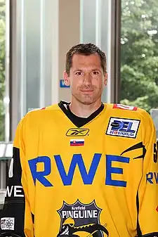 In the 2013–2014 season, he began playing for the Orli Znojmo (Eagles), based in Czech city of Znojmo. The team is part of the Austrian Hockey League, also known as the Erste Bank Eishockey Liga (EBEL) or Erste Bank Hockey League, in English, for its major sponsor.[2] He also competed in the men's tournament at the 2002 Winter Olympics.[3]
