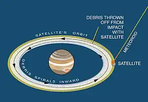In 2002–2003 Galileo spacecraft had two passes through the gossamer rings. During them its dust counter detected dust particles in the size range 0.2–5 μm.[30][31] In addition, the Galileo spacecraft's star scanner detected small, discrete bodies (< 1 km) near Amalthea.[32] These may represent collisional debris generated from impacts with this satellite.