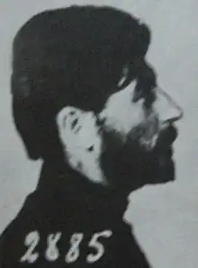 Joseph Stalin began his political activity after being exposed to Marxism and other left-wing political thinkers while studying at the Tbilisi Theological Seminary in Georgia.[1] After being discovered to be in possession of radical political literature, Stalin was expelled from the seminary in 1899. Following his expulsion, he devoted himself to his revolutionary activities and became a member of the anti-tsarist, Russian Social Democratic Labor Party (RSDLP). When the RSDLP divided into the Bolshevik and Menshevik factions, Stalin joined the Bolsheviks led by Vladimir Lenin, whom he finally met in 1905.[2] Tasked with raising money for the Bolsheviks, Stalin resorted to criminal activity,[3] through his formation of the Outfit, a criminal gang that were involved with armed robberies, racketeering, assassinations, arms procurement and child couriering.[4] According to Montefiore, Stalin socialised with hitmen “Kamo and Tsintsadze" but issued formal commands to the rest of the Outfit members through his bodyguard.[5] Montefiore also described Stalin during this formative period as a "terrorist-gangster".[6] Stalin also took a leading role in the planning and execution of the 1907 Tiflis bank robbery.