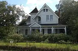 Built in 1898, the house is a two-story frame residence in Queen Anne Revival style with Eastlake gallery details, three polygonal bays and two chimneys. The roof features a square turret with two oculi.[2]