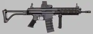 The Robinson Armament Co. XCR is a multi-caliber, gas piston weapon system developed by Robinson Armament Co. for U.S. Special Operations Command (SOCOM) to fill the requirements of the SOF Combat Assault Rifle,[5] or SCAR competition, but was disqualified on a technicality due to late delivery of blank firing adapters. It has been offered to law enforcement, the military, and the general public since 2006.[6][7]