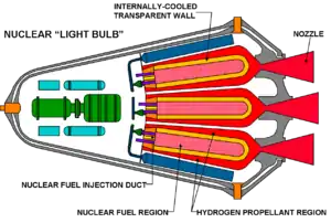 Alternatively, an inert propellant can be used that can be externally heated, such as in steam rocket, solar thermal rocket or nuclear thermal rockets.[2]