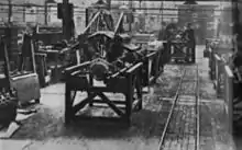 The Eagle was developed further during 1916 and 1917, with power being progressively increased from 225 hp (168 kW) to 266 hp (198 kW), followed by 284 hp (212 kW), and then 322 hp (240 kW), and finally 360 hp (270 kW) by February 1918 by which time eight Eagle variants had been produced.[6][7] Throughout World War I Rolls-Royce struggled to build Eagles in the quantities required by the War Office, but the company resisted pressure to license other manufacturers to produce it. The fears of Rolls-Royce that the engine's much admired quality would be compromised by other manufacturers is often given as an explanation for this resistance,[8] but the commercial terms sought by Rolls-Royce for licence production were so restrictive that other manufacturers - apart from Brazil Straker - refused to accept them.[9] When the Ministry of Munitions took over coordination of aircraft production in 1917, Sir William Weir declined to intervene in the company's commercial strategy, even though success of the engine owed much to the technology transfer directed by the RNAS. He preferred to support untested engines using cast aluminium components like the Siddeley Puma and the Sunbeam Arab, believing them to be better suited to mass production, in comparison to the intricate machining required to build the Eagle and its smaller cousin the Falcon.[10]